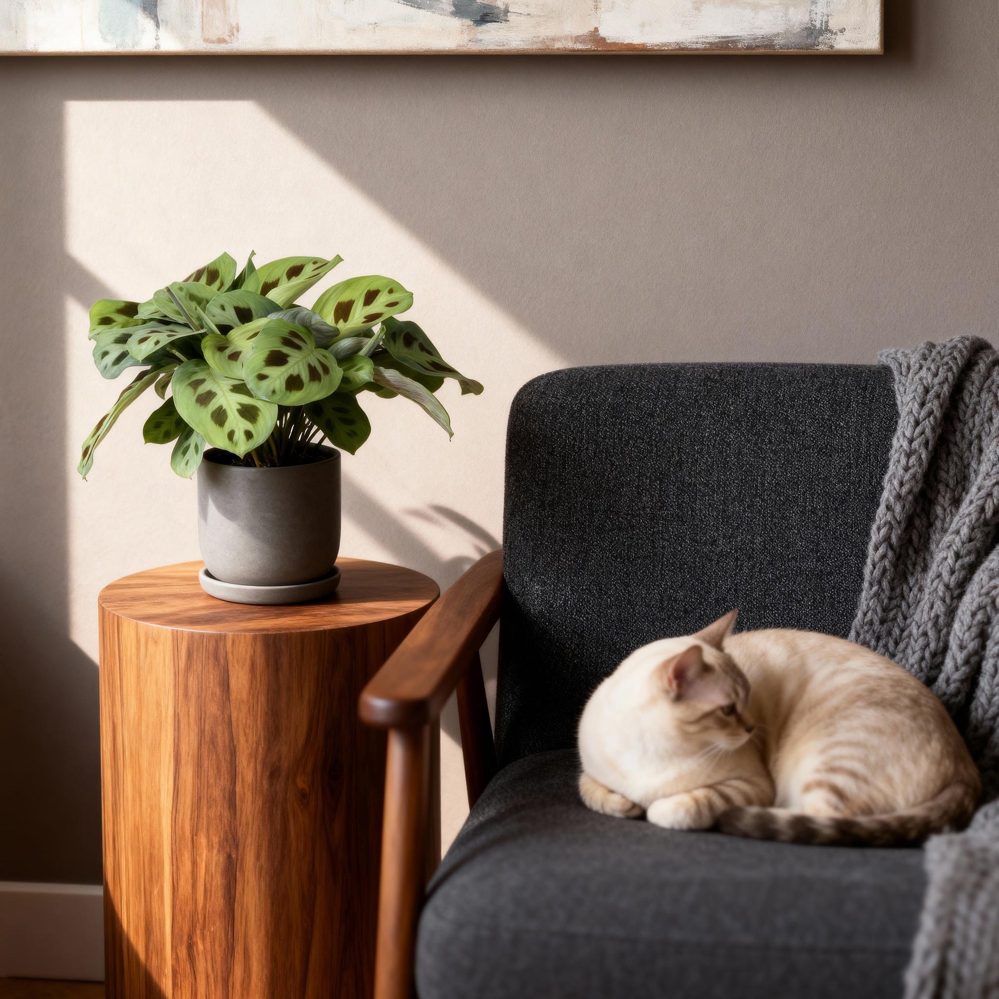 Die Maranta Fascinator bringt mit ihren farbenfrohen Blattmustern und dem charakteristischen Tag-Nacht-Blattspiel lebendige Dynamik und zugleich Ruhe in den Raum. Sie verbessert das Raumklima, bindet Staub und erzeugt ein natürliches, harmonisches Ambiente – ideal für Wohn-, Arbeits- und Schlafräume, in denen ein dekorativer, beruhigender Grünton gefragt ist.