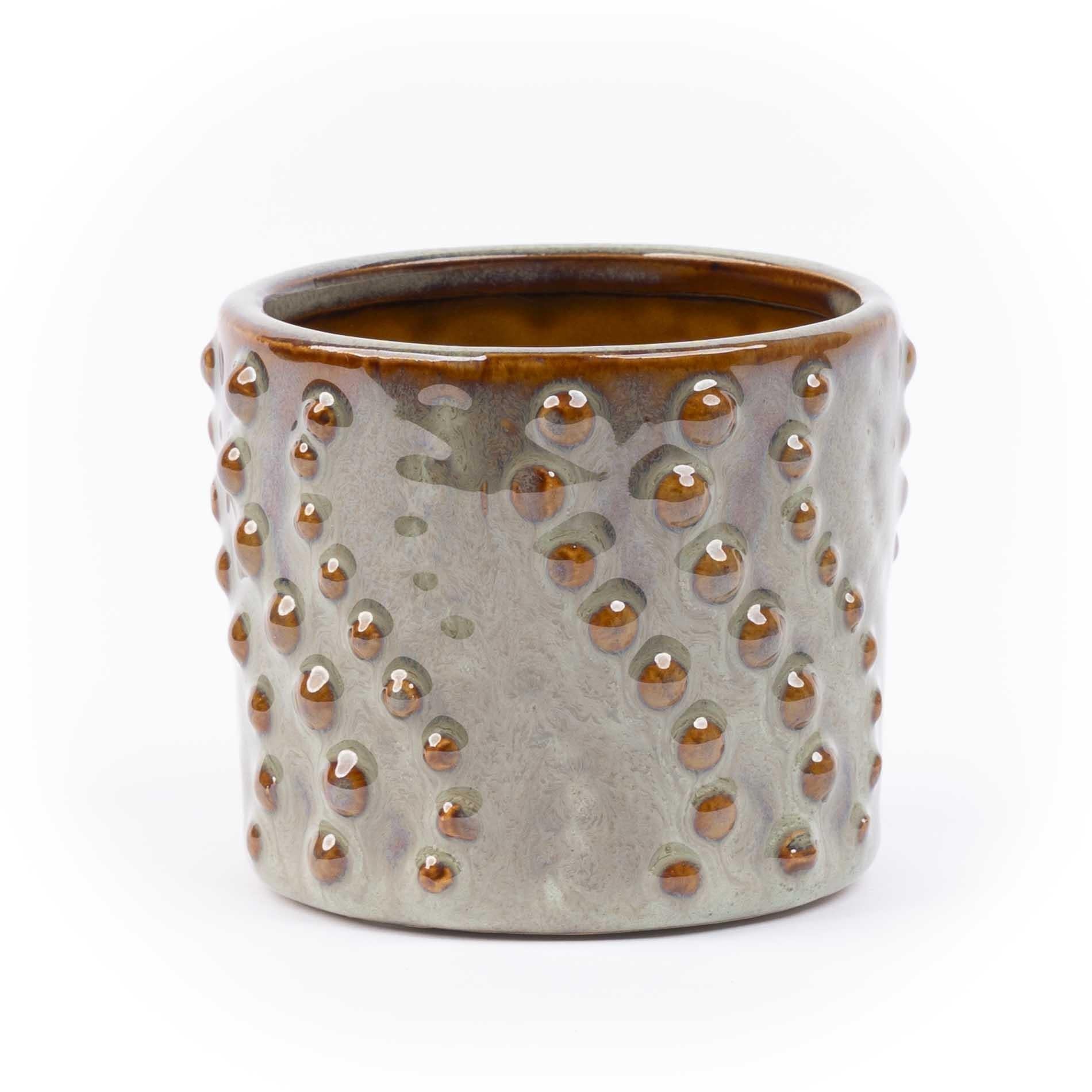 Sie suchen nach einer stilvollen Ergänzung für Ihre Pflanzensammlung? Dann sind Sie hier genau richtig! Dieses Set aus Keramiktöpfen ist ein echter Hingucker: Die Töpfe bestechen durch einzigartige Muster und warme Farben, die sich mühelos in jedes Interieur einfügen. Ob modern, Boho, rustikal oder minimalistisch – dieses Mini-Topfset passt perfekt in jede Einrichtung. Kombinieren Sie Ihre Pflanzen nach Lust und Laune. Dank ihrer kompakten Größe sind diese Töpfe ideal, um Ihre Pflanzensammlung aufzuwerten. Platzieren Sie sie auf dem Tisch, in der Küche oder als gemütliches Duo auf der Fensterbank und schaffen Sie sich so eine kleine grüne Oase in Ihrem Zuhause. Set mit 6 Keramiktöpfen. Maße: Durchmesser 7,2 cm, Höhe 6,3 cm. Material: Keramik.